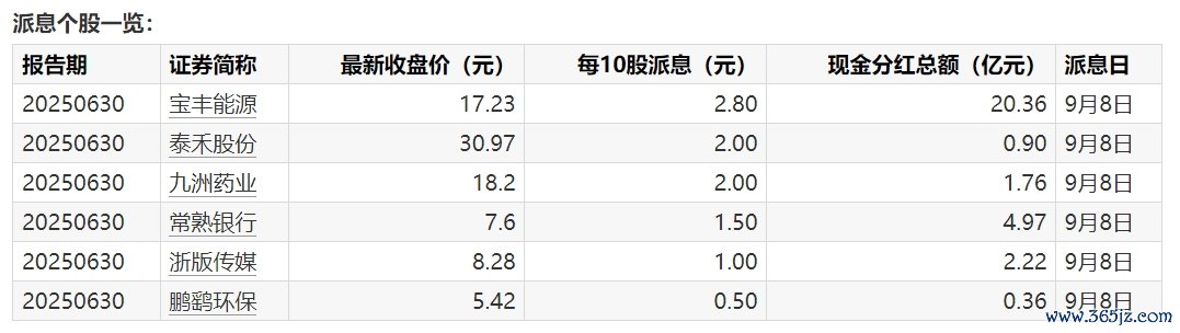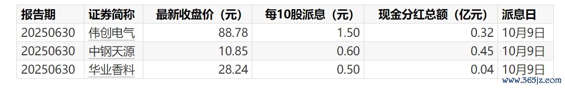 A股分成派息转增一览(9月30日):3股当天股权登记